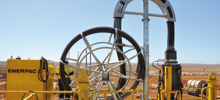 VDM 集團(tuán)在建設(shè)澳大利亞最大的磁鐵礦開采和加工地點(diǎn)中采用一套Enerpac 鋼索提升系統(tǒng),該系統(tǒng)能夠安全地定位大型負(fù)載,精確度在毫米以內(nèi)。